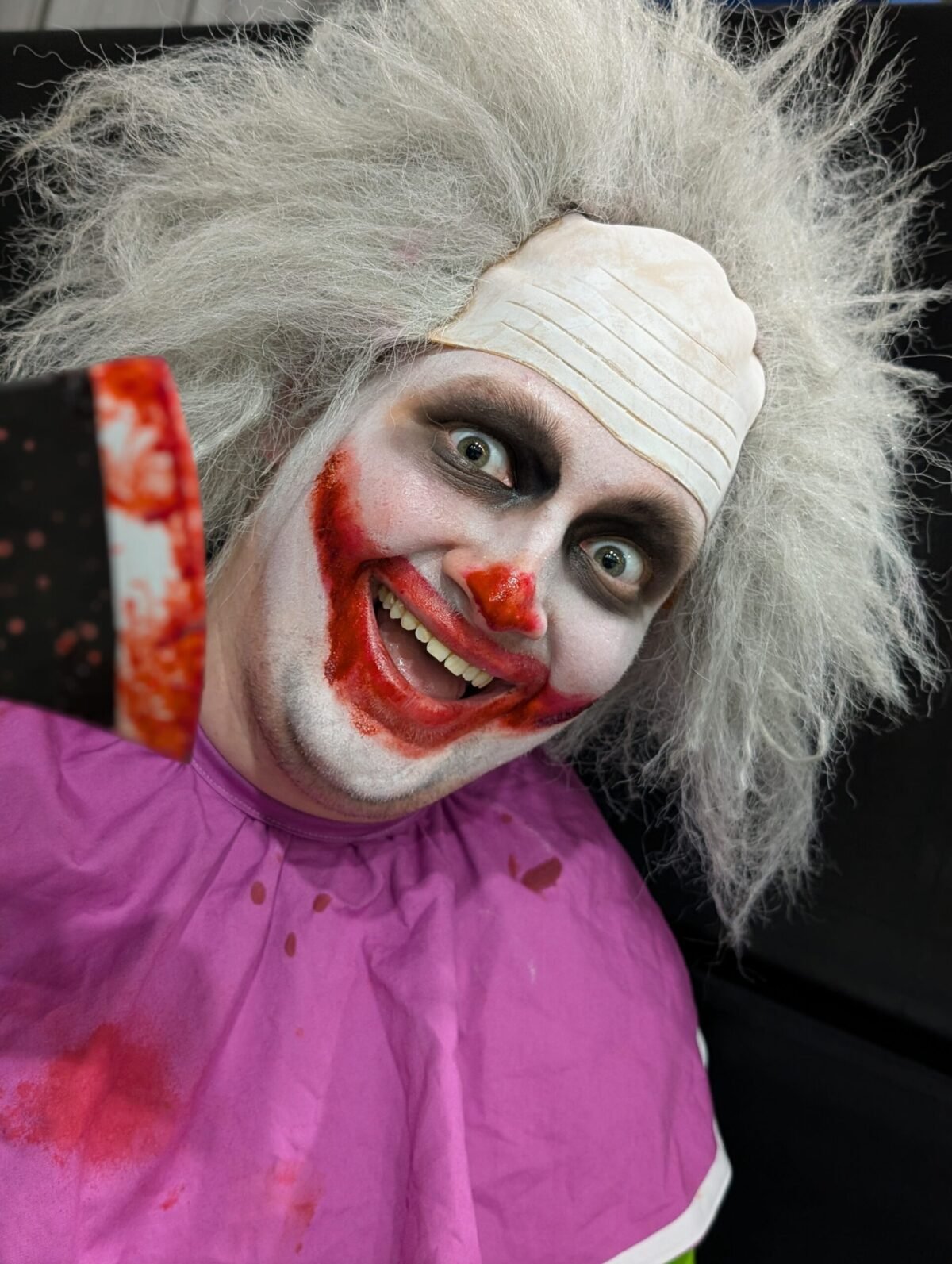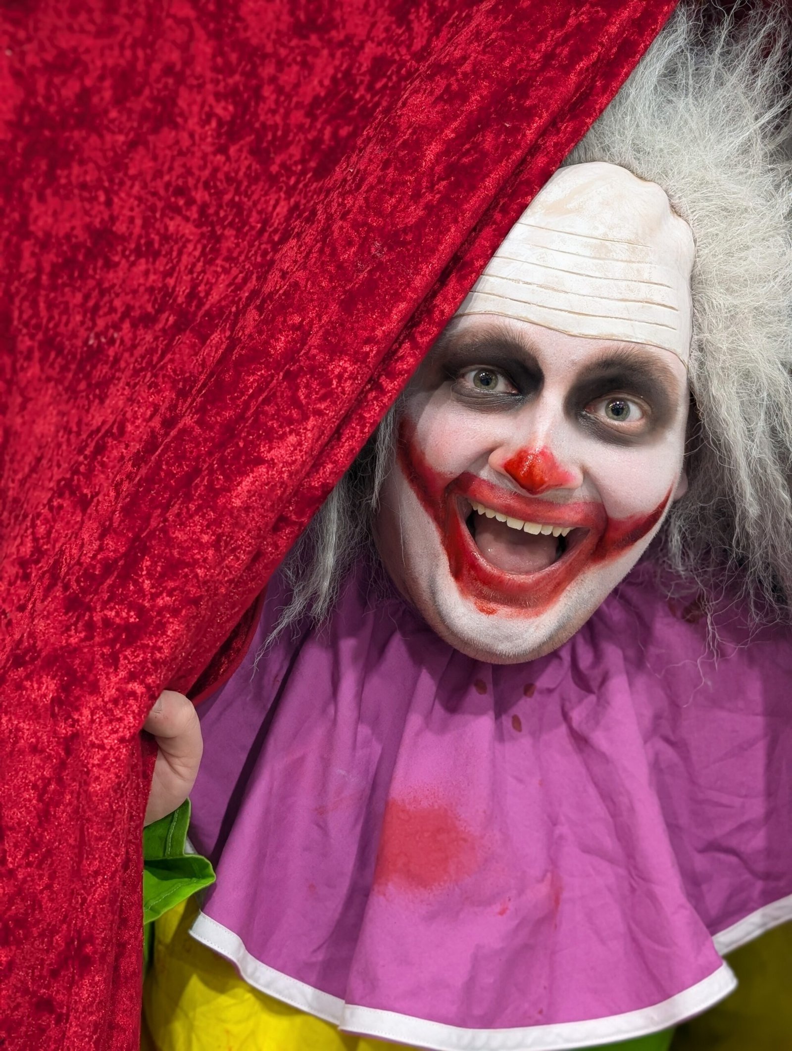 My name is Timothy, I’ve spent nearly a decade creating a strong character that resonates with guests, whether you need a friendly (if slightly unsettling) face at the front of your attraction, a twisted, axe wielding creature with one of the loudest laughs in the business I’m your clown!